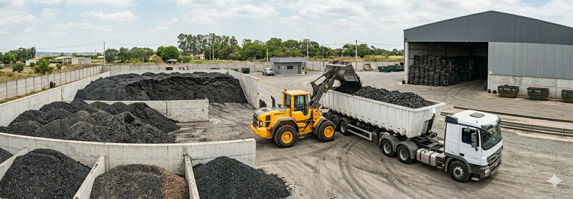 - Operadores de coprocessamento que recebem pneus inteiros e trituram para alimentação de fornos de cimento.